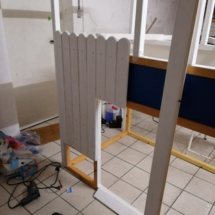Alle weiteren Matierialien wurden wie angegeben im Baumarkt gekauft (Ca. 350€) Die Latten wurden alle im Vorfeld mit einer umweltverträglichen Holzfarbe in weiß gestrichen und mit einer Kapp und Gehrungssäge (geliehen) zugeschnitten und wie in der Anleitung mit Schrauben an dem Unterbau befestigt.